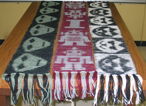 These three illusion scarves were made as gifts. The Alien Scarf was designed by Shetha Nolke; the pattern can be found in the fabulous Stitch N Bitch: The Knitter’s Handbook by Debbie Stoller. After starting the Aliens, I was so tickled with them that I had to try my hand at making my own charts and so we have Robots and Cats in Shades.